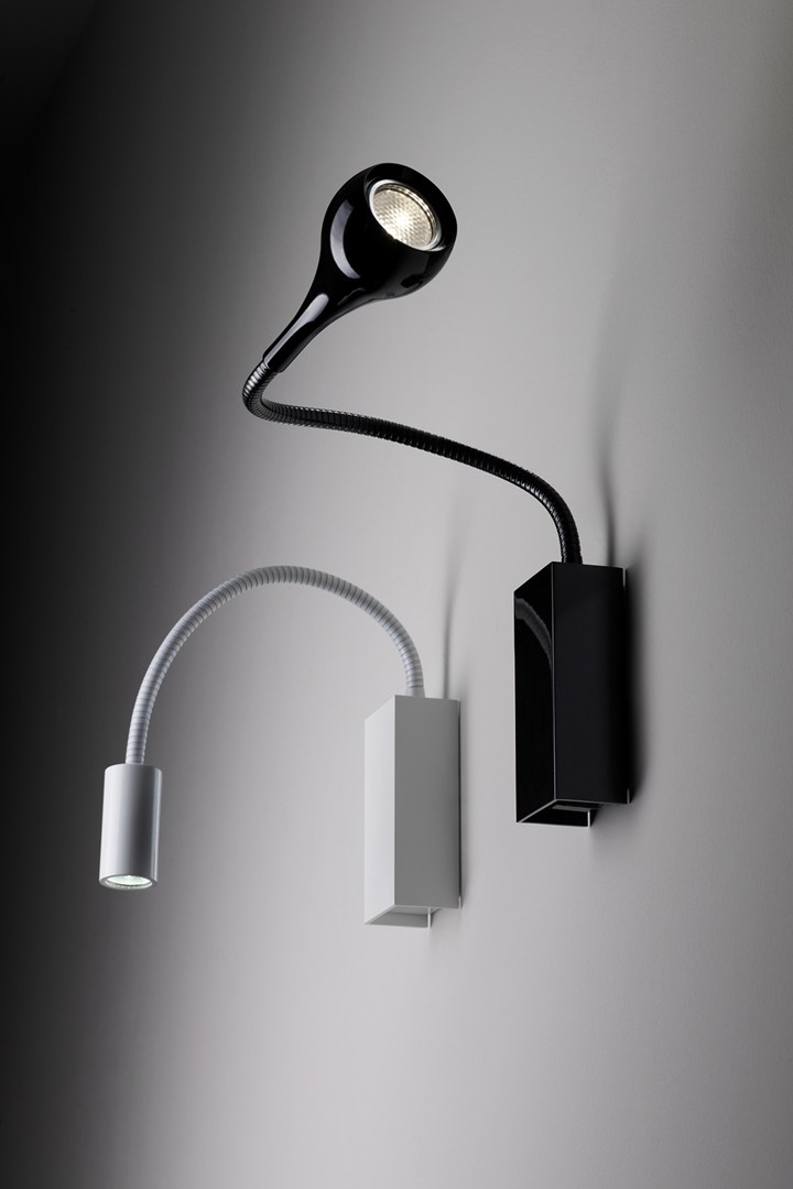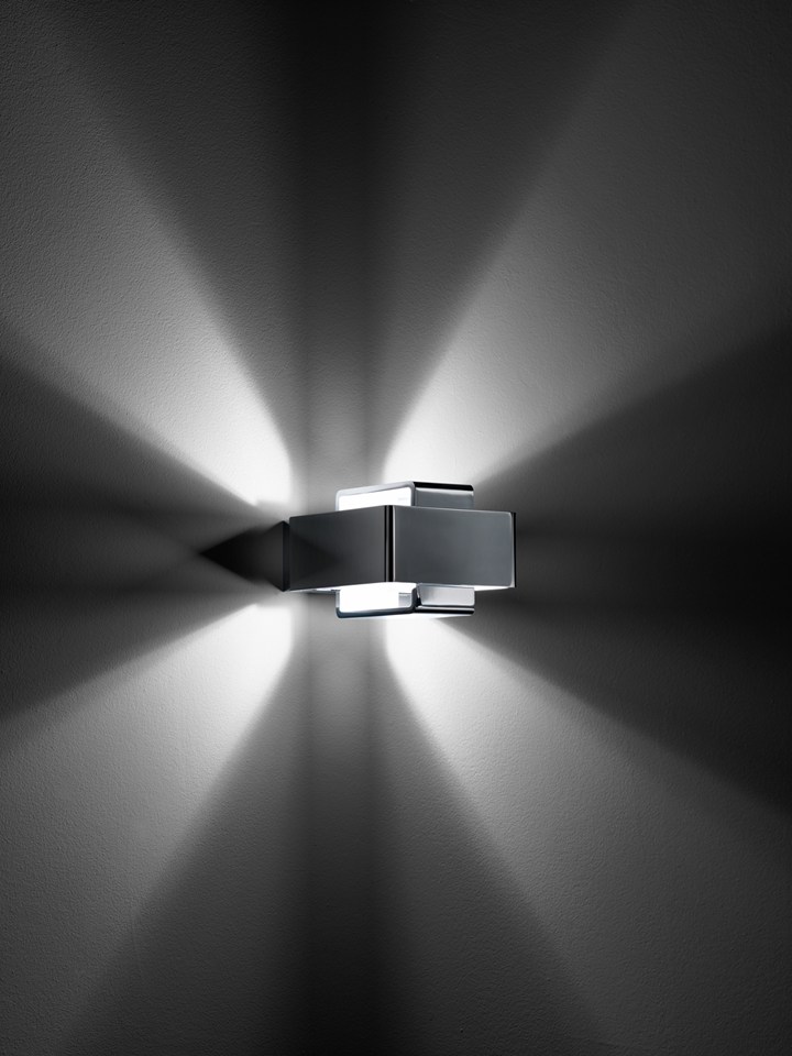 Коллекция включает подвесные, настенные и стандартные лампы, выполненные в белом или хромовом исполнении.