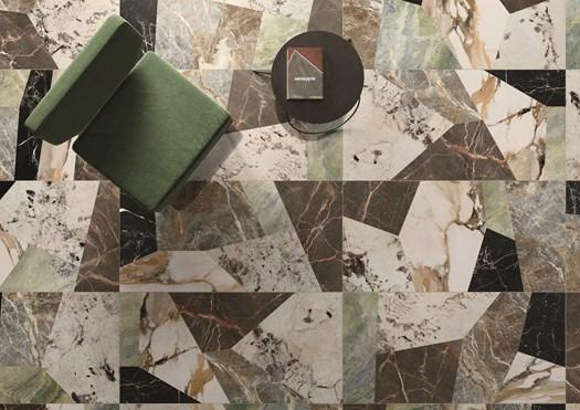 Коллекция включает в себя размеры от 60x60 см до больших плит шириной 120 см. Разнообразие текстур и цветов, таких как Ombra Moca и Green Ray, позволяет создавать непредсказуемые и элегантные интерьеры.