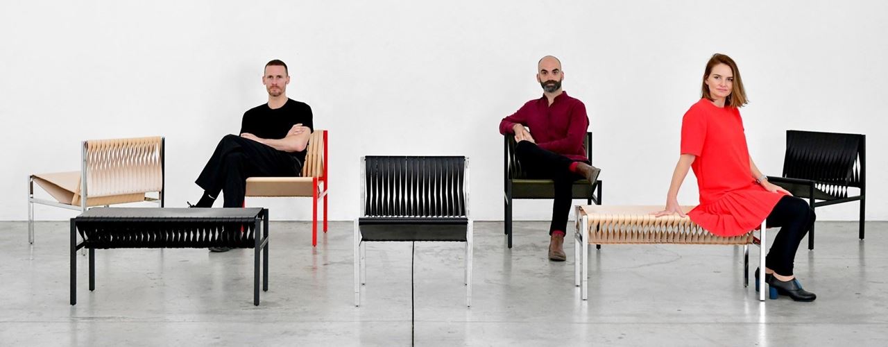 Коллекция включает стулья и скамейки, выполненные из итальянской кожи и стали. Они сочетают органические материалы с угловатыми силуэтами, предлагая современный взгляд на классику.