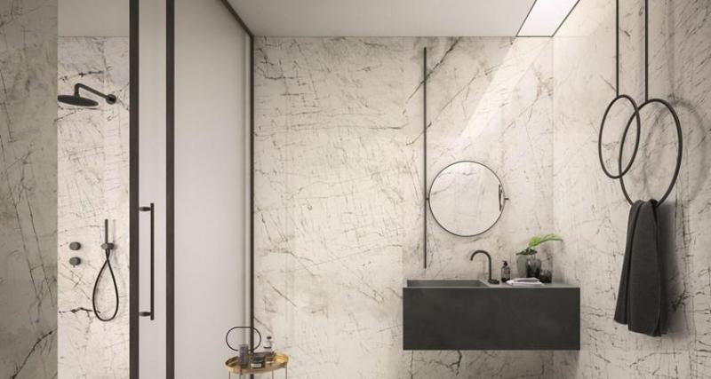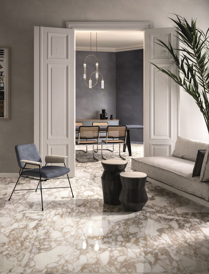 Мраморная плитка Eclectic доступна в форматах от 30x30 см до макси-формата 120x278 см и представлена в различных цветах и текстурах, идеально подходящих для современных интерьеров.