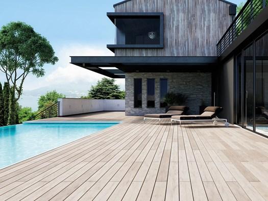 Полы Externo от Woodco обладают высокой устойчивостью к пятнам и плесени. Их можно использовать для террас, дорожек и бассейнов, обеспечивая безопасность и долговечность.