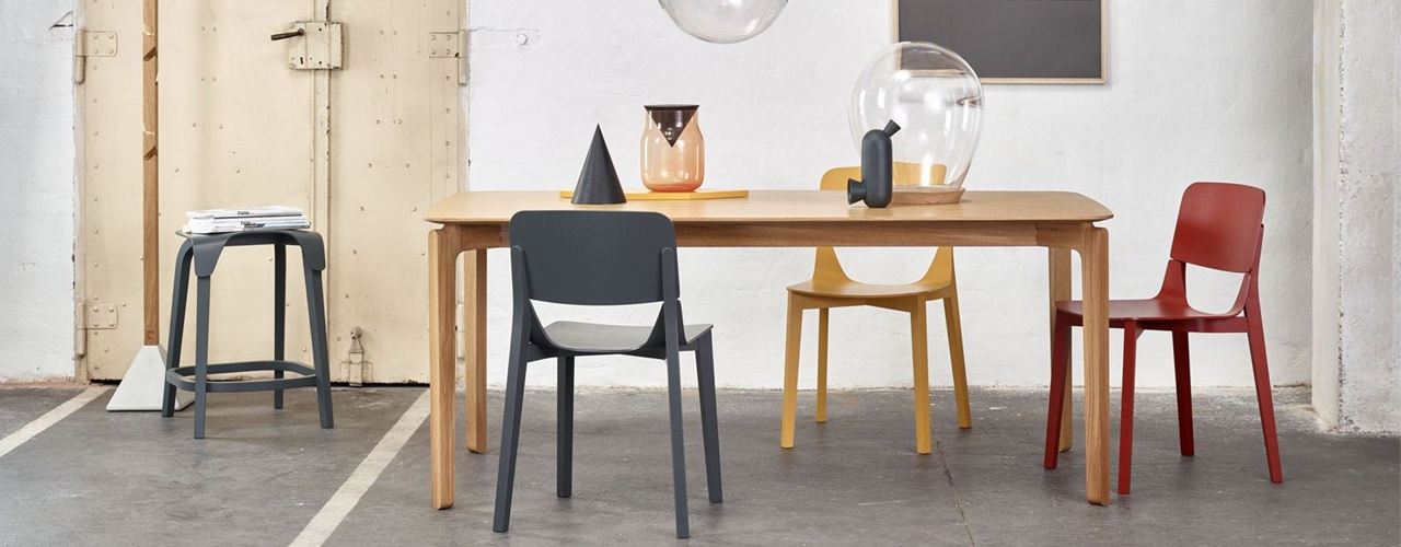 Коллекция Leaf была разработана итальянской студией E-ggs, которая черпала вдохновение в формах деревьев. Основной идеей стало создание стульев и барных стульев с несущей конструкцией из массива дерева, дополненной изящными сиденьями и спинками из формованной фанеры.