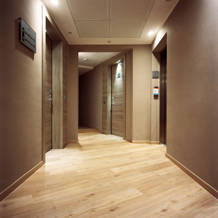 Полы PureLoc обеспечивают звукопоглощение и устойчивость к повреждениям, что делает их идеальными для гостиничного использования.