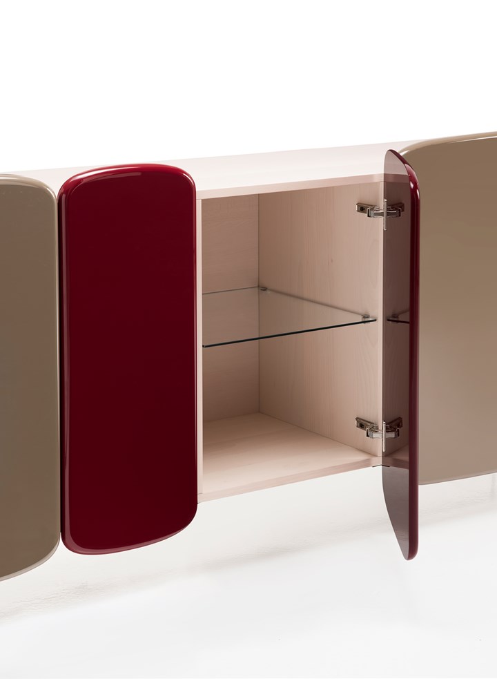 Комод Spectro отличается дверью из лакированного дерева с мягкими закругленными краями, которая создает хроматическую композицию. Он доступен в различных цветовых палитрах, что позволяет адаптироваться к любому интерьеру.