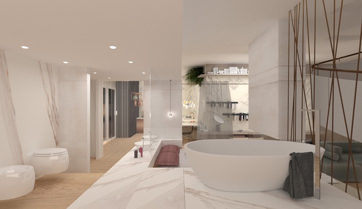 Этот проект, созданный Лукой Павильянити, был вдохновлен эстетикой Милана. Дизайнер использовал керамические материалы для достижения уникальных текстур и цветов.