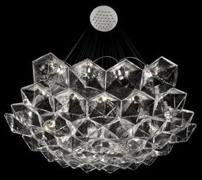 FACET — это шестиугольная люстра, напоминающая бриллиант. Она сочетает в себе прозрачность и геометрию для создания уникальной атмосферы.