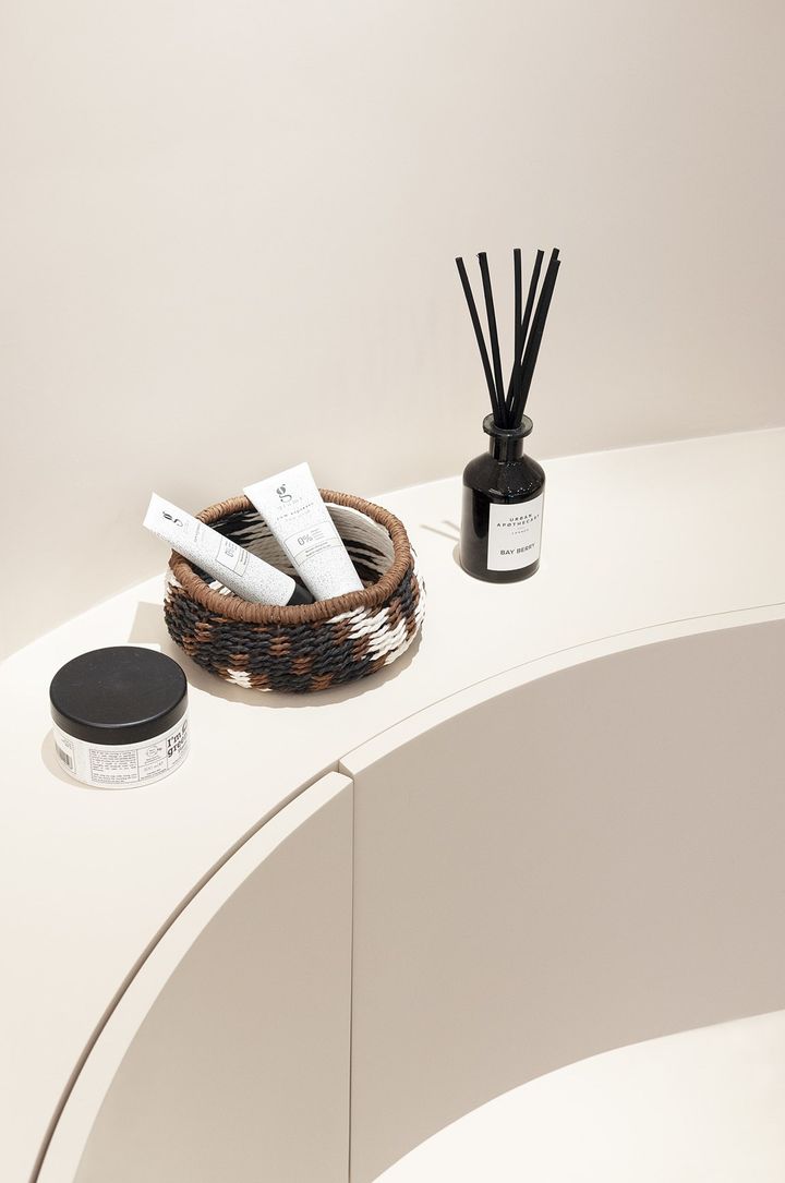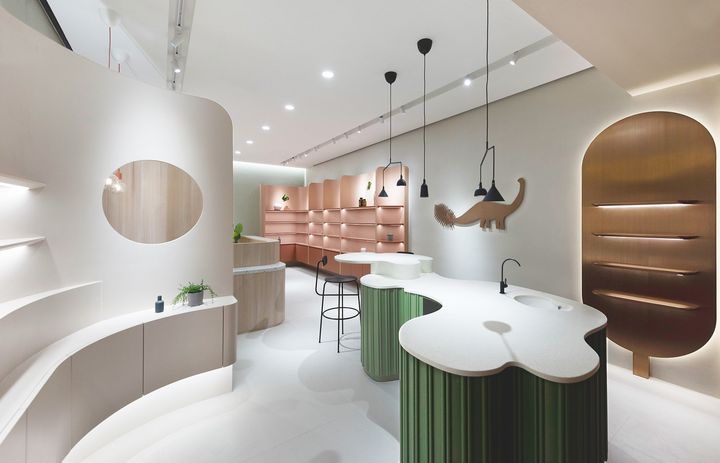 Проект Beautysaur Organics впечатляет сочетанием мягких цветов и текстур. Керамогранит Metropolis в оттенке Tokyo White подчеркивает стиль и функциональность интерьера.