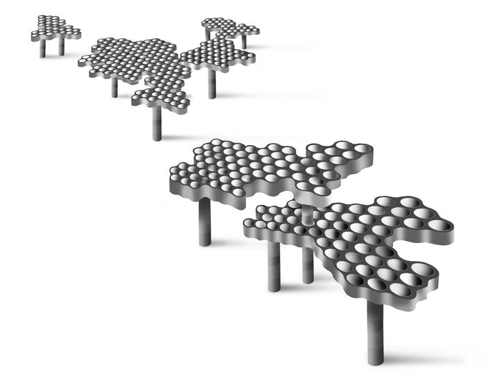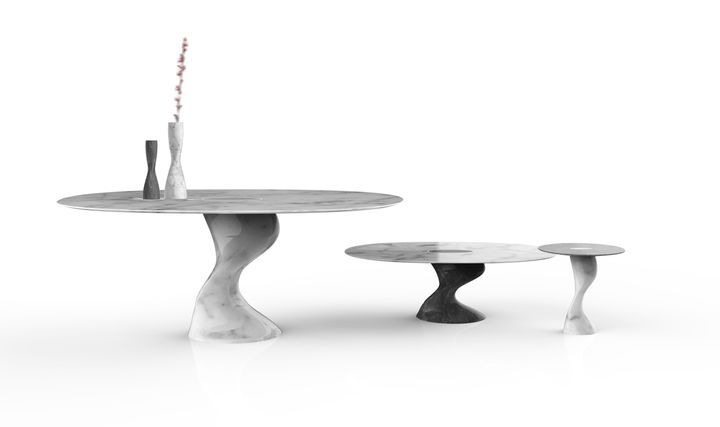На выставке Marmomacc были представлены прототипы изделий, разработанные с участием ведущих дизайнеров и архитекторов. Эти примеры демонстрируют, как инновативные методы позволяют создавать сложные конструкции из мрамора для различных применений — от интерьера до архитектуры.