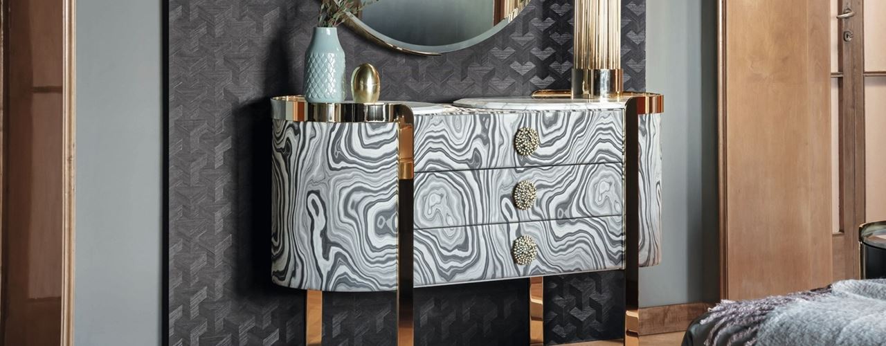 Коллекция Doris от Opera Contemporary предлагает уникальные решения для тех, кто ценит современный стиль и качество. Разработанная студией Castello Lagravinese, эта коллекция включает в себя буфеты, барные стойки, тумбы и туалетные столики, выполненные с использованием металла, дерева, ткани и мрамора.