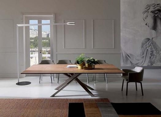 Стол состоит из раздвижной металлической конструкции с деревянным верхом и надставками. Металлический механизм открывания обеспечивает долговечность и надежность. Дизайнерский подход Джулио Манцони позволил создать продукт, который не только функционален, но и эстетически привлекателен.