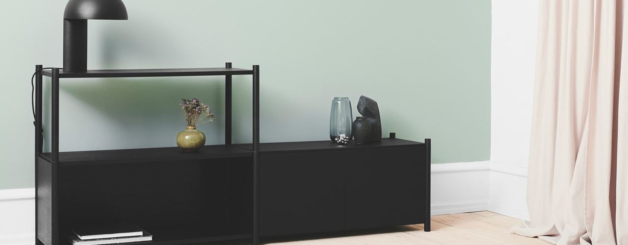 Стеллажи Scene Turns Black можно собирать как в высоту, так и в ширину, добавляя боковые панели, двери или задние панели. Они идеально подходят для демонстрации книг, аксессуаров и декора.
