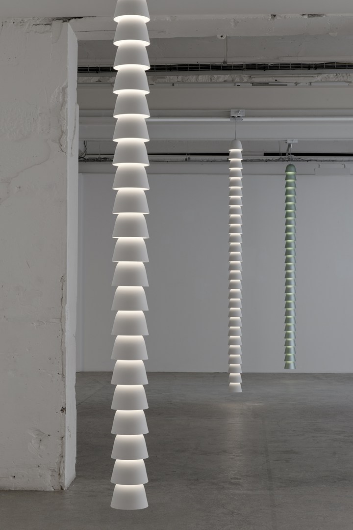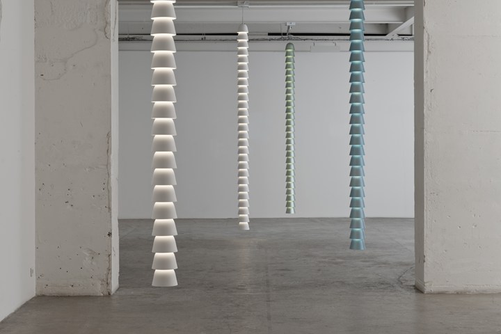 Цепи изготовлены из белого гипса и анодированного алюминия.