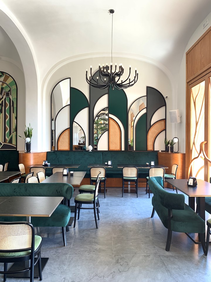 Какие элементы использованы в интерьере ресторана?