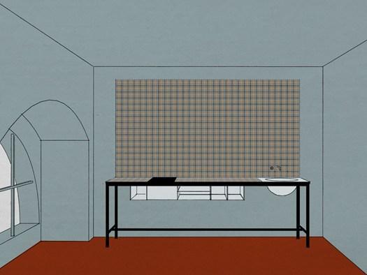 Элиза Оссино применяет терракотовую плитку с ручной текстурой и расписанные вручную обои.