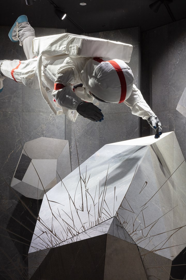 Коллекция включает в себя покрытия, которые сочетают в себе камень и мрамор, создавая уникальные поверхности с яркой индивидуальностью. Архитектор Лавиани использовал эти материалы для создания впечатляющей инсталляции.