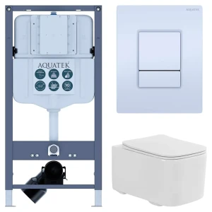 Комплект инсталляции Aquatek Pneumo N 49 с безободковым унитазом Aquatek Квадро клавиша Aquatek Pnn-0000001 белая