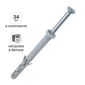 Дюбель-гвоздь нейлоновый Dilwis потайная манжета 6x60мм 34 шт.