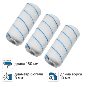 Валик сменный для водных красок 180 мм Dilwis ворс 10 мм микрофибра под бюгель 8 мм 3 шт