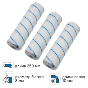 Валик сменный для водных красок 250 мм Dilwis ворс 10 мм микрофибра под бюгель 8 мм 3 шт