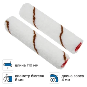 Мини-валик сменный для алкидных красок 110 мм Dilwis ворс 8 мм полиэстер под бюгель 6 мм 2 шт
