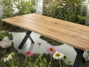Прямоугольный обеденный стол из стали и дерева