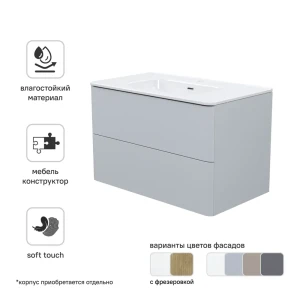 IDDIS Lahta - Подвесная тумба 80 см серого цвета с керамической раковиной 89371284