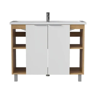 Тумба под раковину Сохо KONSENSA напольная 96.6 см цвет дуб гудзон золотой/белый софт тач