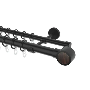 Настенный карниз раздвижной двухрядный Сомбрио d16/19 200-360 см металл цвет черный