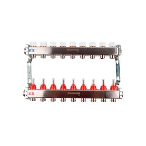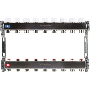 Коллектор в сборе для радиаторного отопления Rommer 1"x3/4" 9 выходов нержавеющая сталь RMS-3210-000009