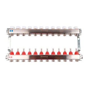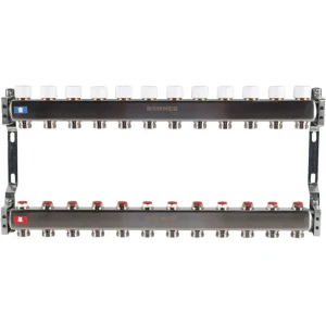 Коллектор с расходомером Rommer 1"x3/4" 12 выходов нержавеющая сталь RMS-1200-000012