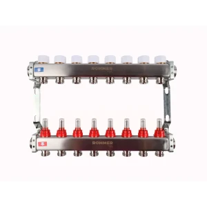 Коллектор с расходомером Rommer 1"x3/4" 8 выходов нержавеющая сталь RMS-1200-000008