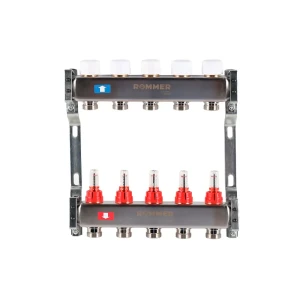 Коллектор в сборе для радиаторного отопления Rommer 1"x3/4" 5 выходов нержавеющая сталь RMS-3210-000005