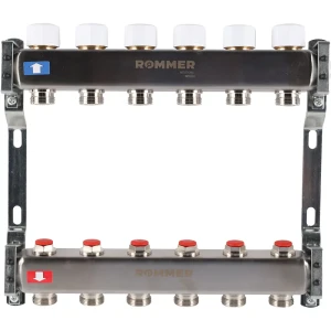 Коллектор в сборе для теплого пола Rommer 1"x3/4" 6 выходов нержавеющая сталь RMS-1210-000006