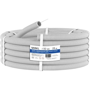 Труба гофрированная Mirkl ПНД с зондом D32 мм 25 м цвет серый