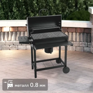 Гриль угольный с коптильней на тележке 65x107x101 см