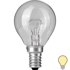 Лампа накаливания «Шар», E14, 25 Вт, свет тёплый белый, прозрачная колба