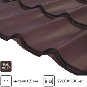 Металлочерепица 0.5 мм 2200x1180 мм RAL 8017 коричневый
