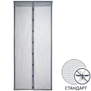 Москитная сетка-штора на дверь с магнитом 45x210 см, цвет серый, 2 шт.