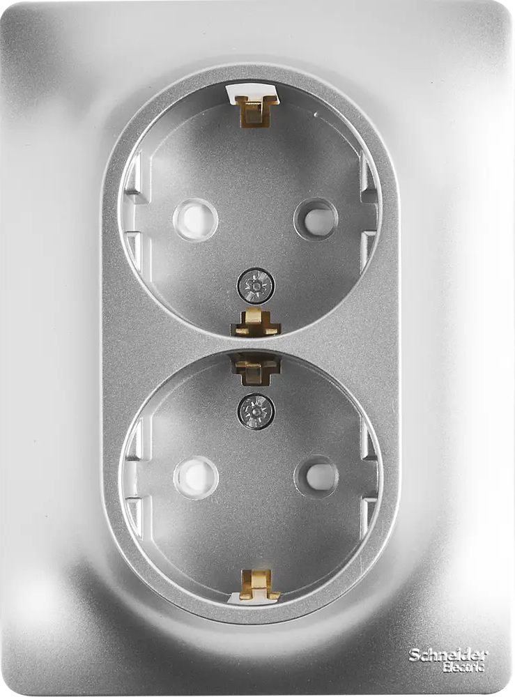 Schneider Electric Glossa — двойная розетка с заземлением в алюминиевом исполнении 86710200