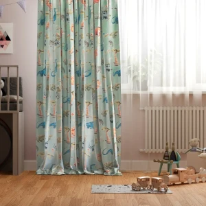 Штора на ленте Динозавры 140x260 см цвет зеленый