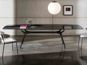 Выдвижной обеденный стол из алюминия и стекла