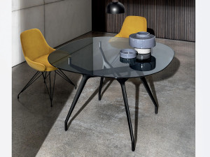 Круглый обеденный стол из алюминия и стекла