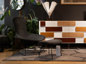 Тканевое кресло с высокой спинкой
