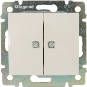 Выключатель встраиваемый двухклавишный Valena с подсветкой, цвет слоновая кость