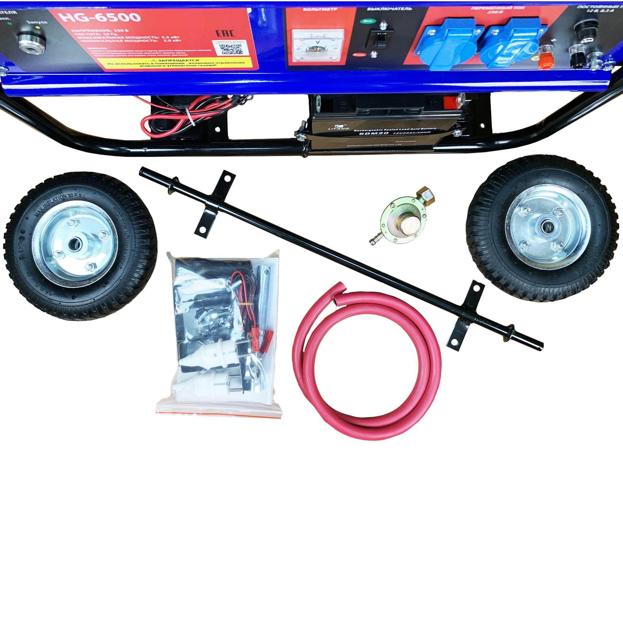 | Аксессуары в комплекте | аккумулятор, колеса2шт, ручки, компл.подключ к сети+баллону, провода 12В для зарядки аккумулятора |