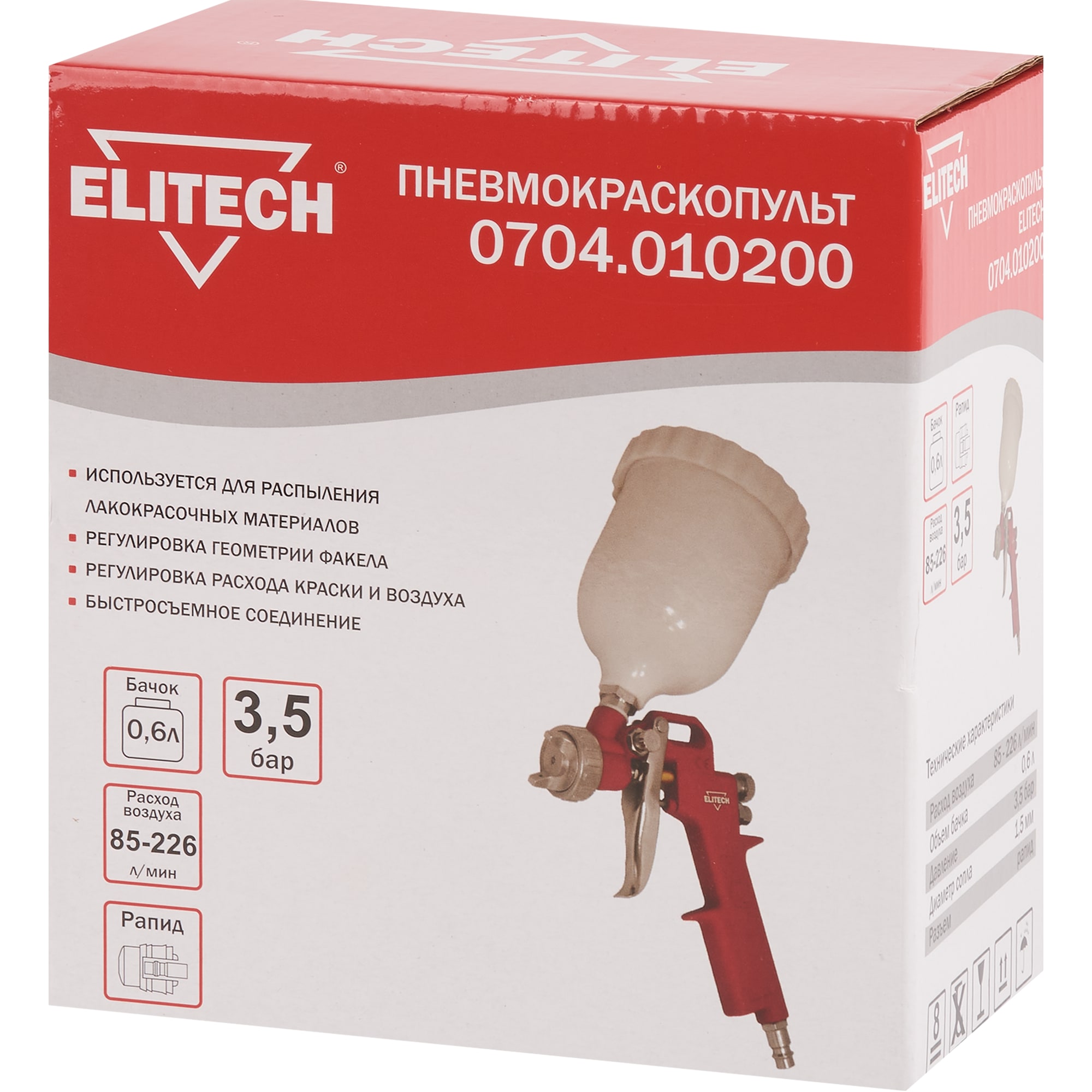 Пневматический краскораспылитель Elitech с регулировкой факела 84552393 STLM-0051860
