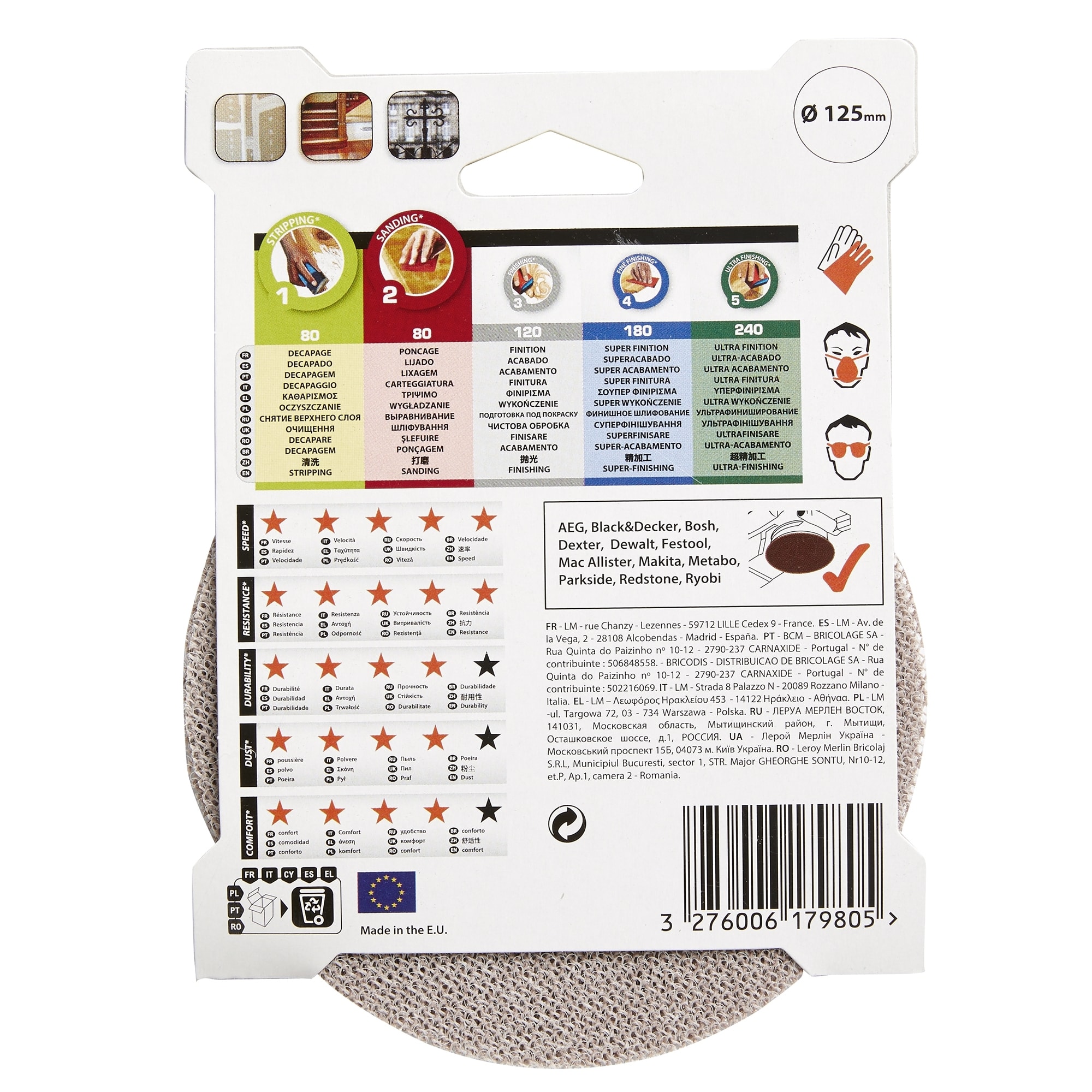 Используйте с шлифмашинами диаметром 115-125 мм, соблюдая технику безопасности. Регулярно очищайте диск от пыли для поддержания эффективности шлифовки.