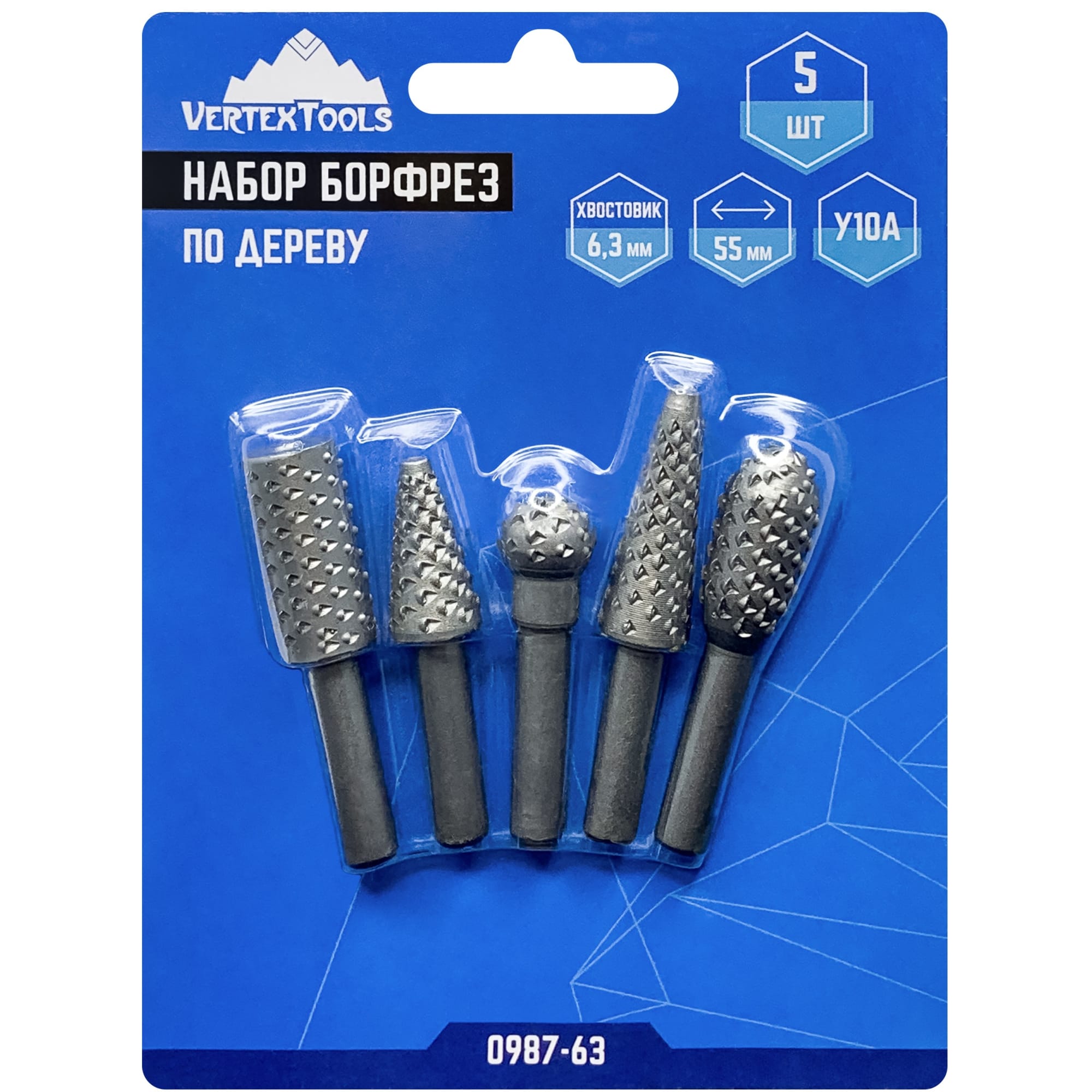 85093826 Набор борфрез по дереву Vertextools 0987-63, 5 шт. STLM-0058666