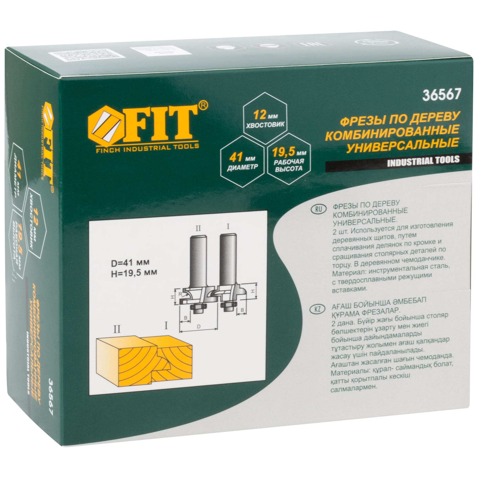 Набор комбинированных фрез Fit (2 шт.) применяется для обработки древесины низкой плотности. Изделия, выполненные из инструментальной стали с твердосплавными режущими вставками, используются с фрезерной машиной. Размер — 41 × 19,5 мм, диаметр хвостовика — 12 мм.