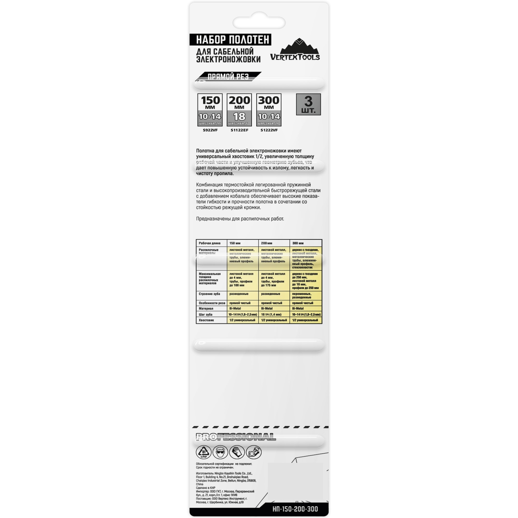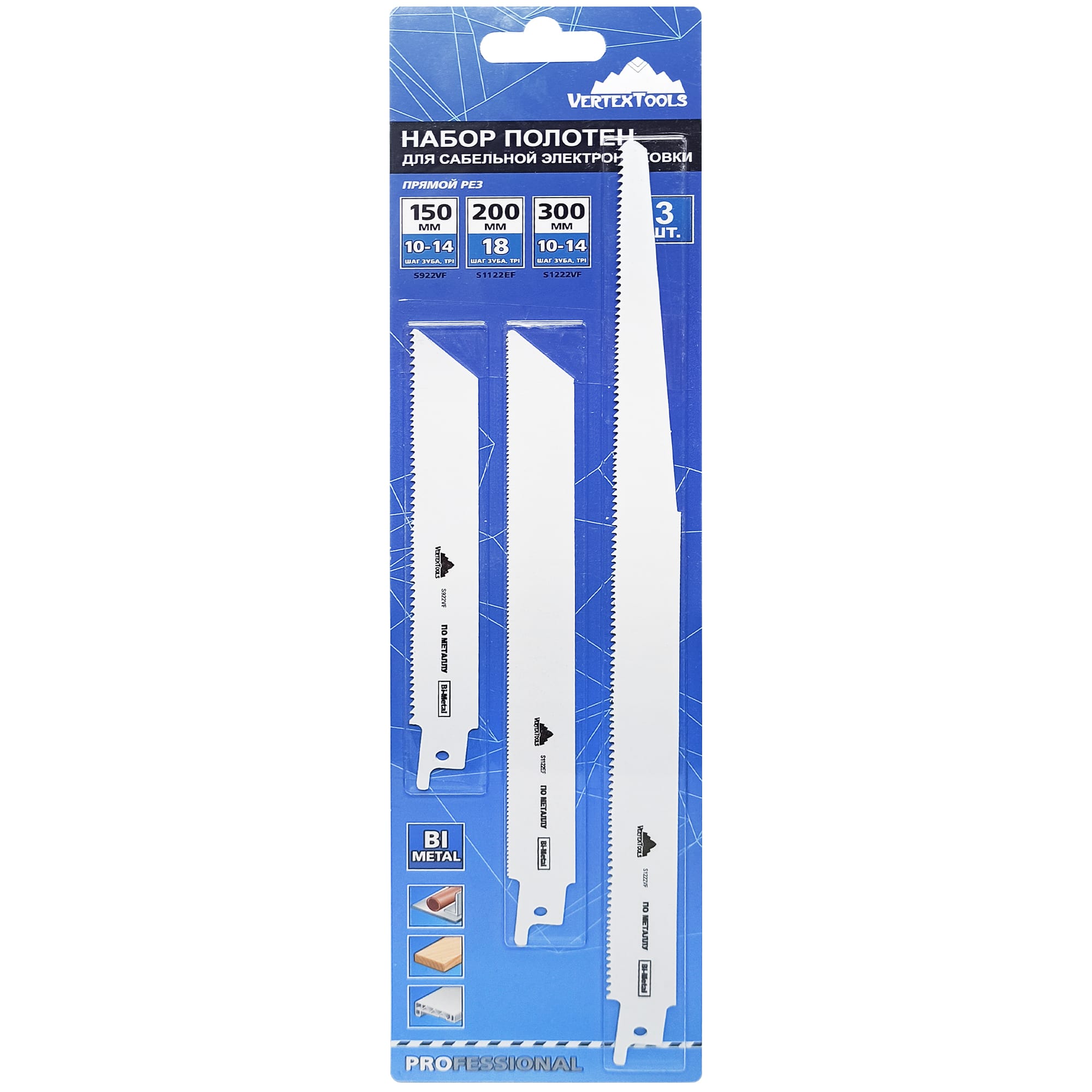 Набор биметаллических полотен Vertextools для сабельной пилы, 3 шт 84825994 STLM-0055665